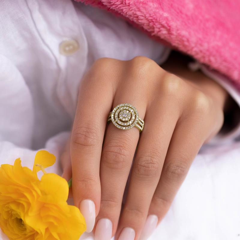 טבעת יהלומים מזהב 14K, המשובצת מיהלומים לבנים ויפים , הטבעת קיימת בזהב לבן וצהוב
