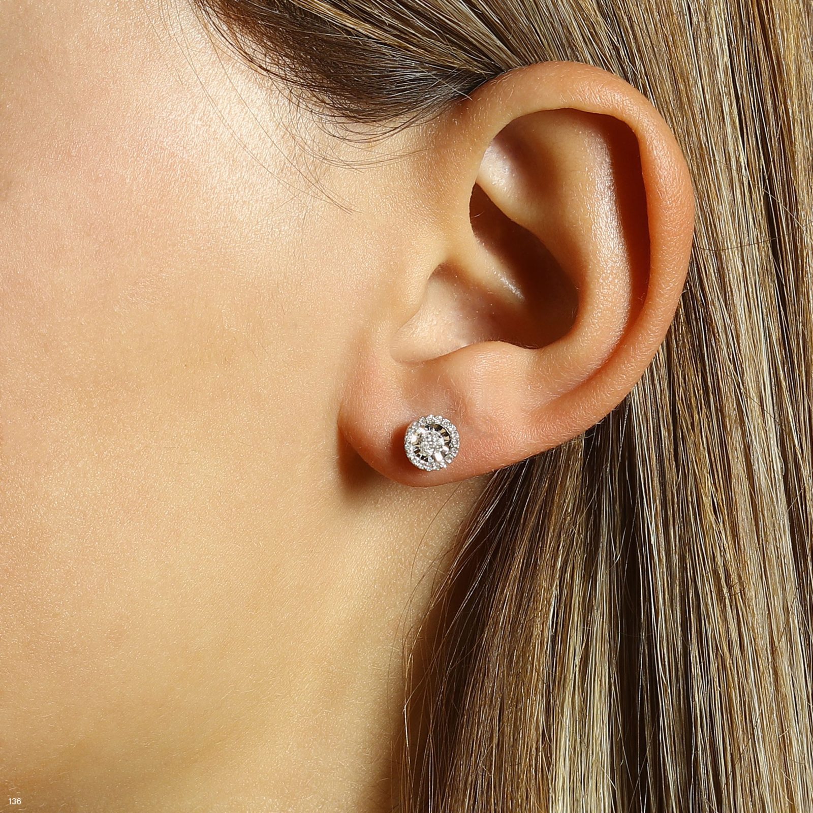 עגילי יהלומים צמודים מזהב 14K, המשובצים מיהלומים לבנים ויפים, העגילים קיימים בזהב לבן, צהוב