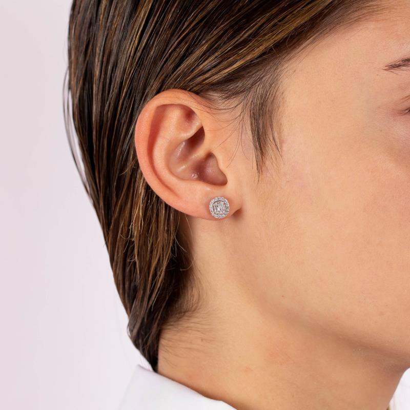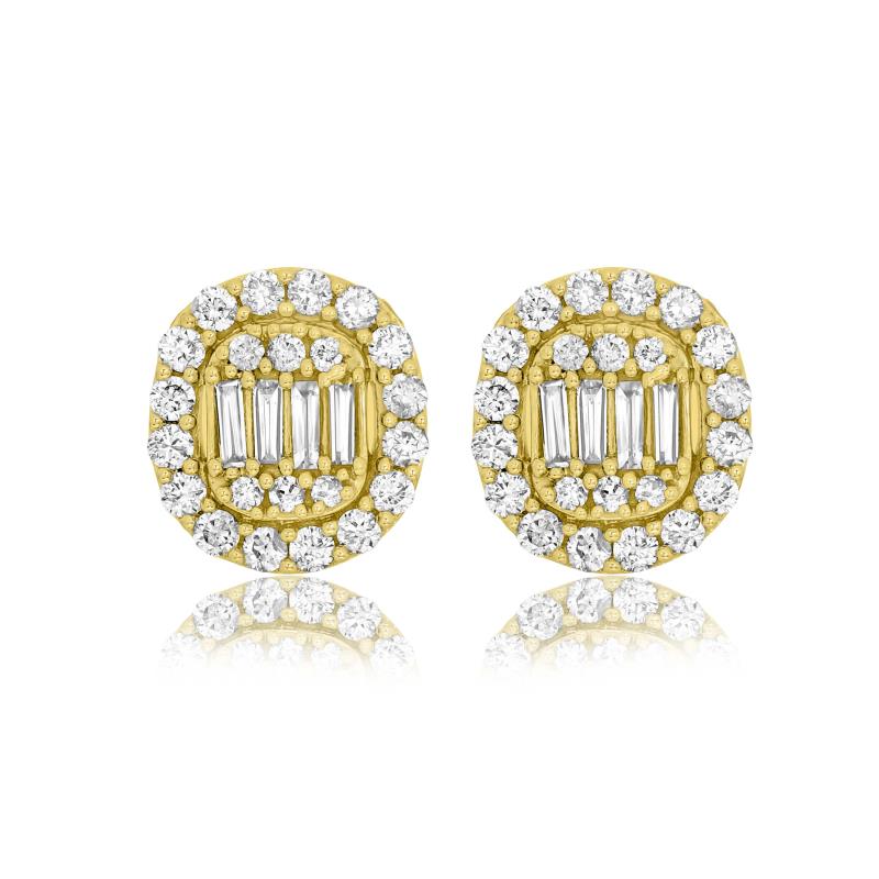 עגילי יהלומים צמודים מזהב 14K, המשובצים מיהלומים לבנים ויפים, העגילים קיימים בזהב לבן וצהוב