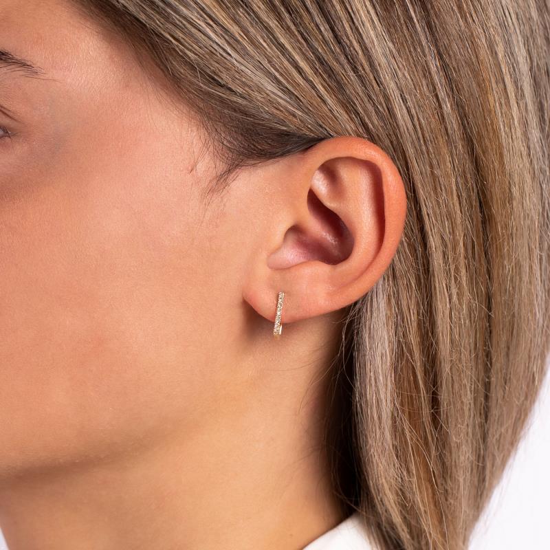 עגילי יהלומים בננה מזהב 14K, המשובצים מיהלומים לבנים ויפים, העגילים קיימים בזהב לבן וצהוב