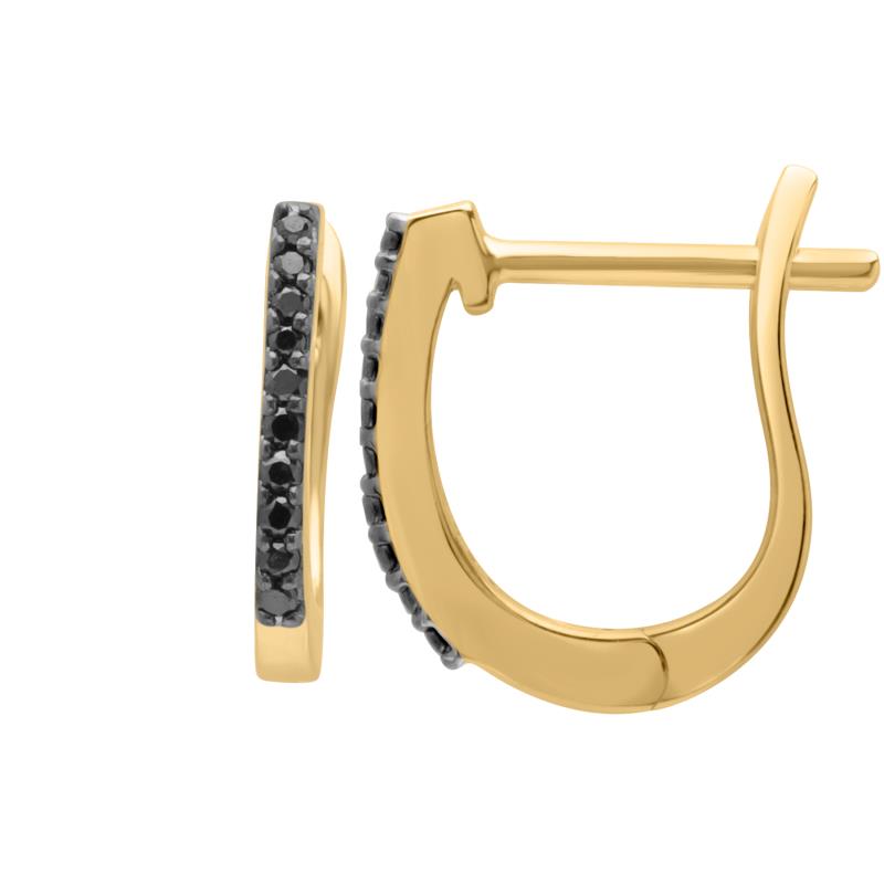 עגילי יהלומים בננה מזהב 14K, המשובצים מיהלומים שחורים, העגילים קיימים בזהב לבן וצהוב