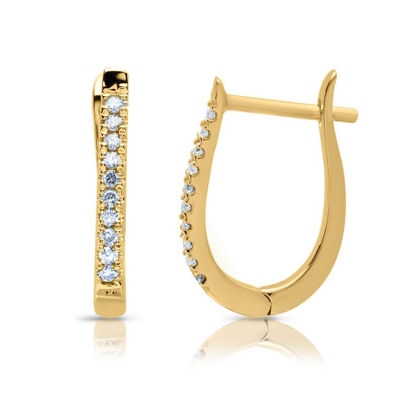 עגילי יהלומים בננה מזהב 14K, המשובצים מיהלומים לבנים ויפים, העגילים קיימים בזהב לבן וצהוב