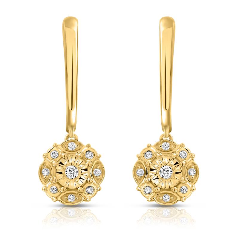 עגילי יהלומים נופלים מזהב 14K, המשובצים מיהלומים לבנים ויפים, העגילים קיימים בזהב לבן וצהוב