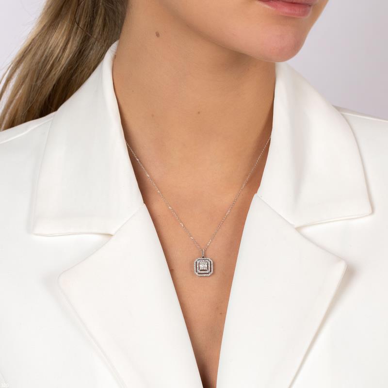שרשרת זהב 14K עם תליון יהלומים מעוצב, המשובץ ביהלומים לבנים ויפים, השרשרת קיימת בזהב לבן, צהוב.