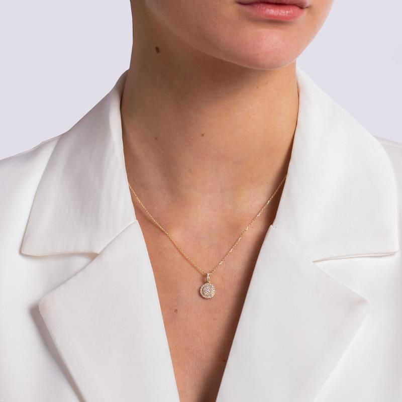 שרשרת זהב 14K עם תליון יהלומים מעוצב, המשובץ ביהלומים לבנים ויפים, השרשרת קיימת בזהב לבן, צהוב.
