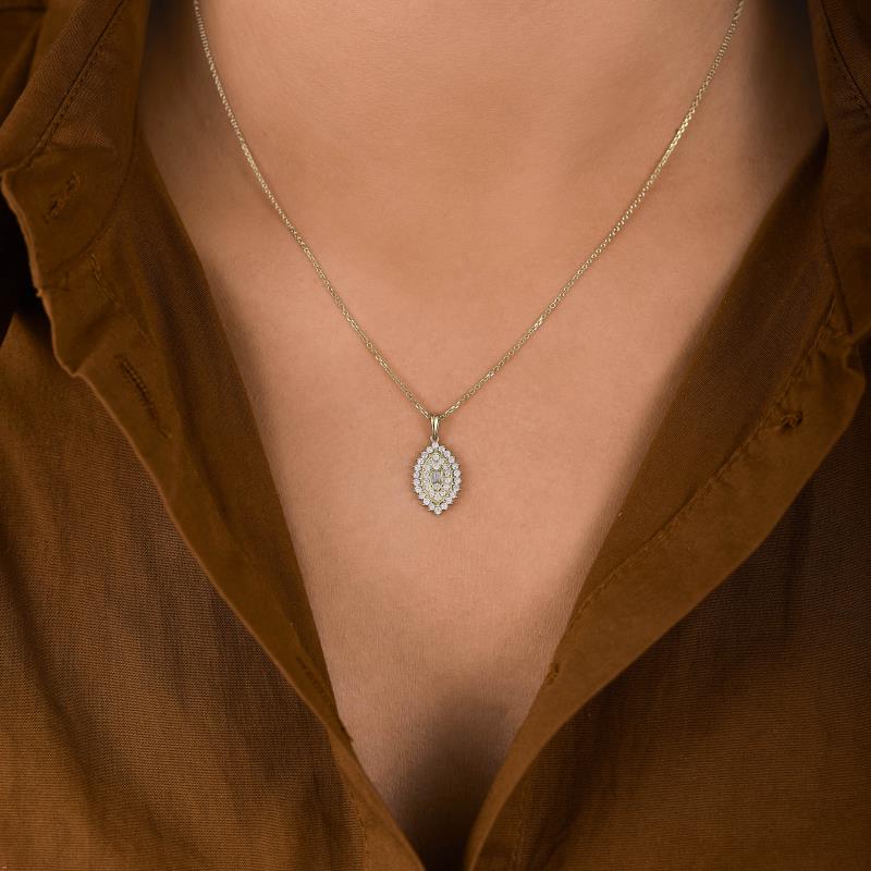 שרשרת זהב 14K עם תליון יהלומים מעוצב, המשובץ ביהלומים לבנים ויפים, השרשרת קיימת בזהב לבן, צהוב.