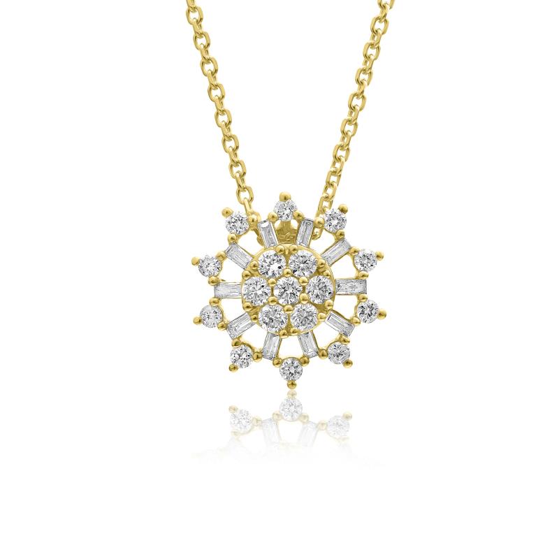 שרשרת זהב 14K עם תליון יהלומים מעוצב, המשובץ ביהלומים לבנים ויפים, השרשרת קיימת בזהב לבן, צהוב.